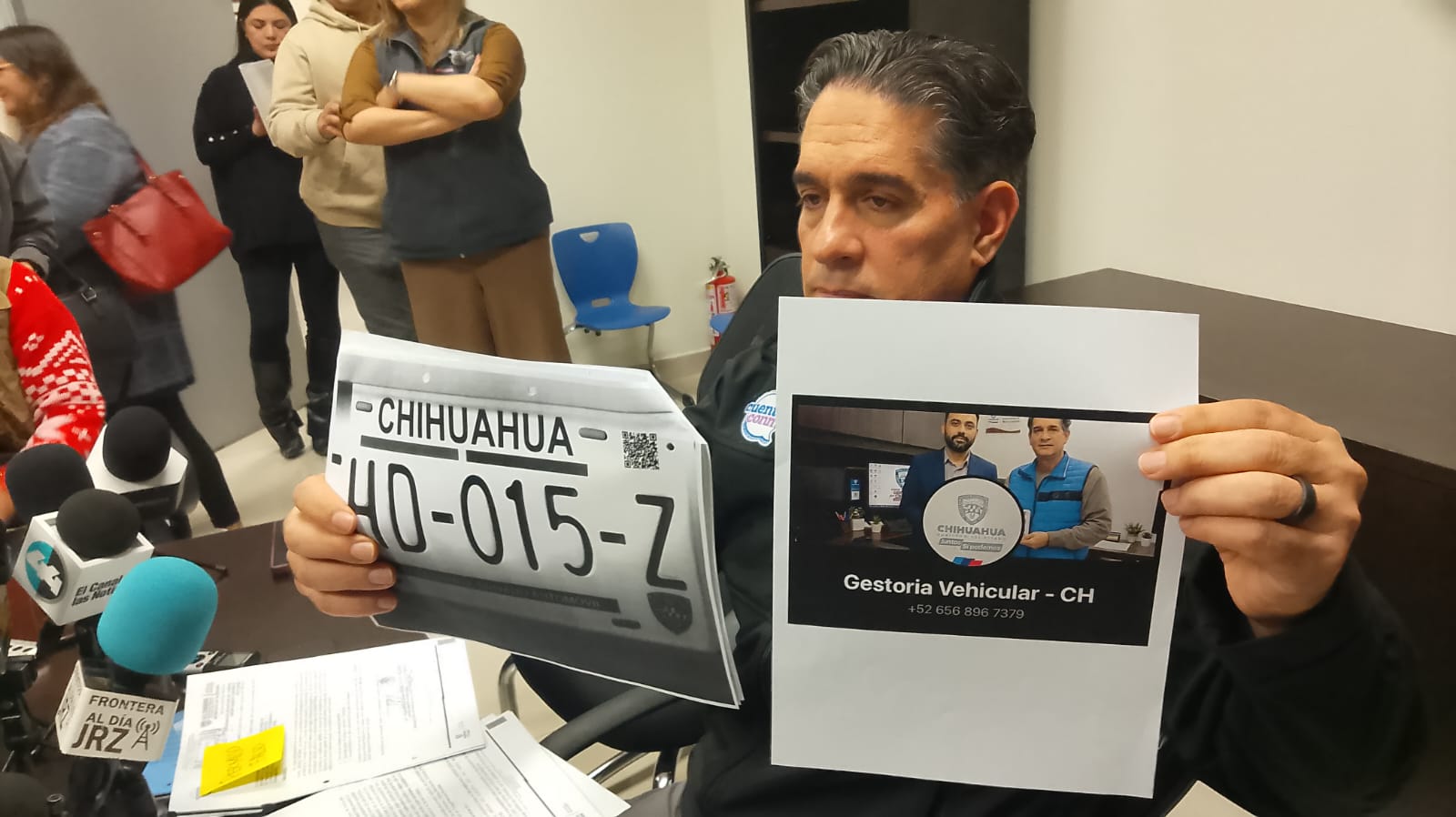 El recaudador de Rentas en Ciudad Juárez, Raul García Ruiz, y la subrecaudadora Mariana Valles alertaron a la población sobre fraudes detectados en supuestos trámites de placas para vehículos de decreto que se ofrecen a través de grupos de WhatsApp.