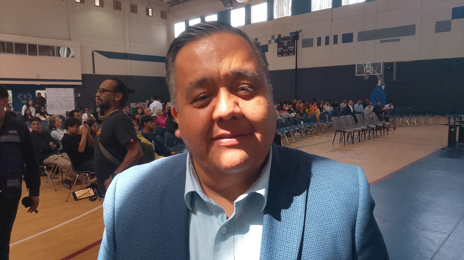 El representante de la gobernadora en Ciudad Juárez, Carlos Ortiz Villegas, asistió al evento “Líderes del Cambio”, realizado en el gimnasio del Tecnológico de Monterrey Campus Ciudad Juarez, donde estudiantes de distintas instituciones presentaron proyectos y experiencias con impacto social.