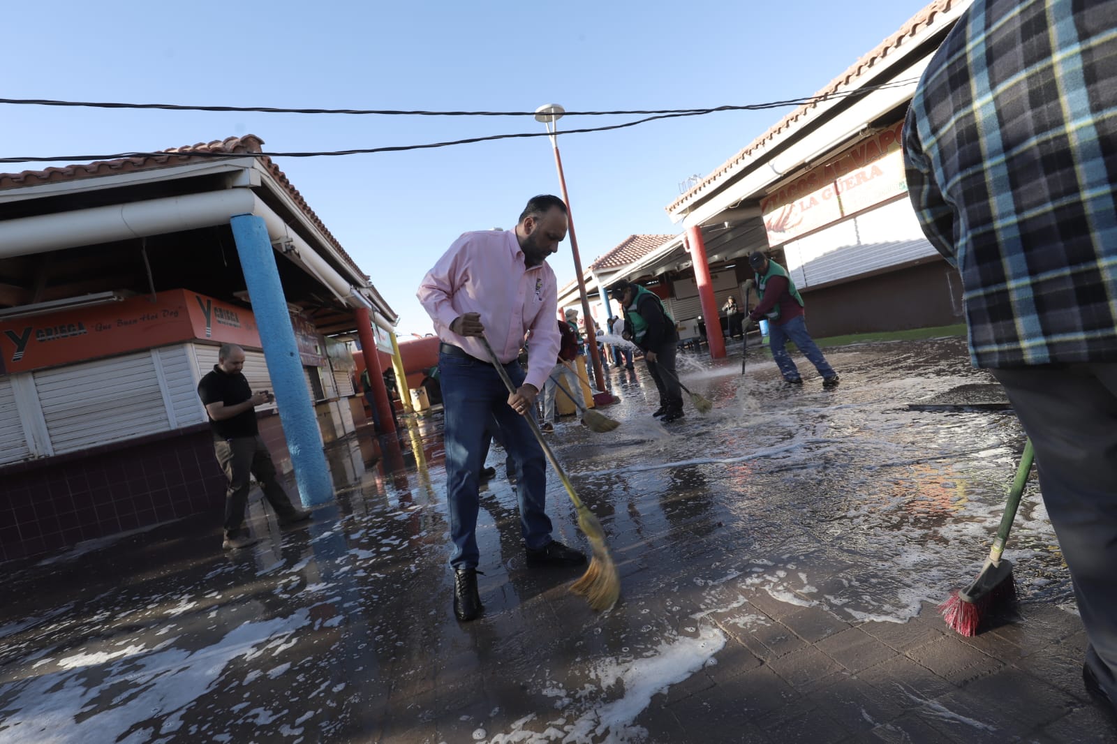 Las labores iniciaron a las 8:00 de la mañana y contemplan barrido, lavado con detergentes, recolección de residuos y atención en áreas comunes, con apoyo de cuadrillas de Limpia, pipas de agua de Protección Civil y Regulación Comercial con personal de inspección.