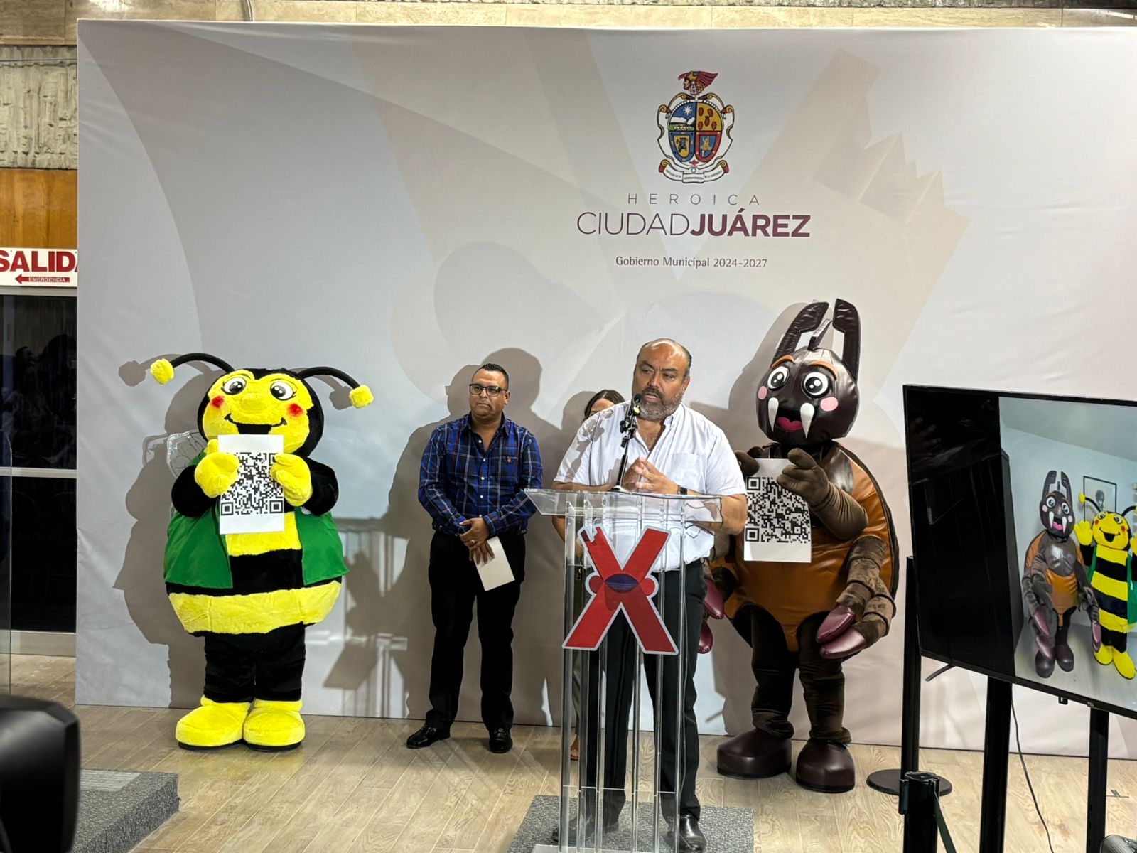 En conferencia de prensa, el Gobierno Municipal a través de la Dirección de Ecología, DABA y Educación, presentaron las nuevas botargas de las dependencias, una abeja y una garrapata, con las que busca generar una concientización sobre la importancia que conlleva el problema de la proliferación de garrapatas y por consecuente el riesgo que representan tanto para las mascotas como para el ser humano.