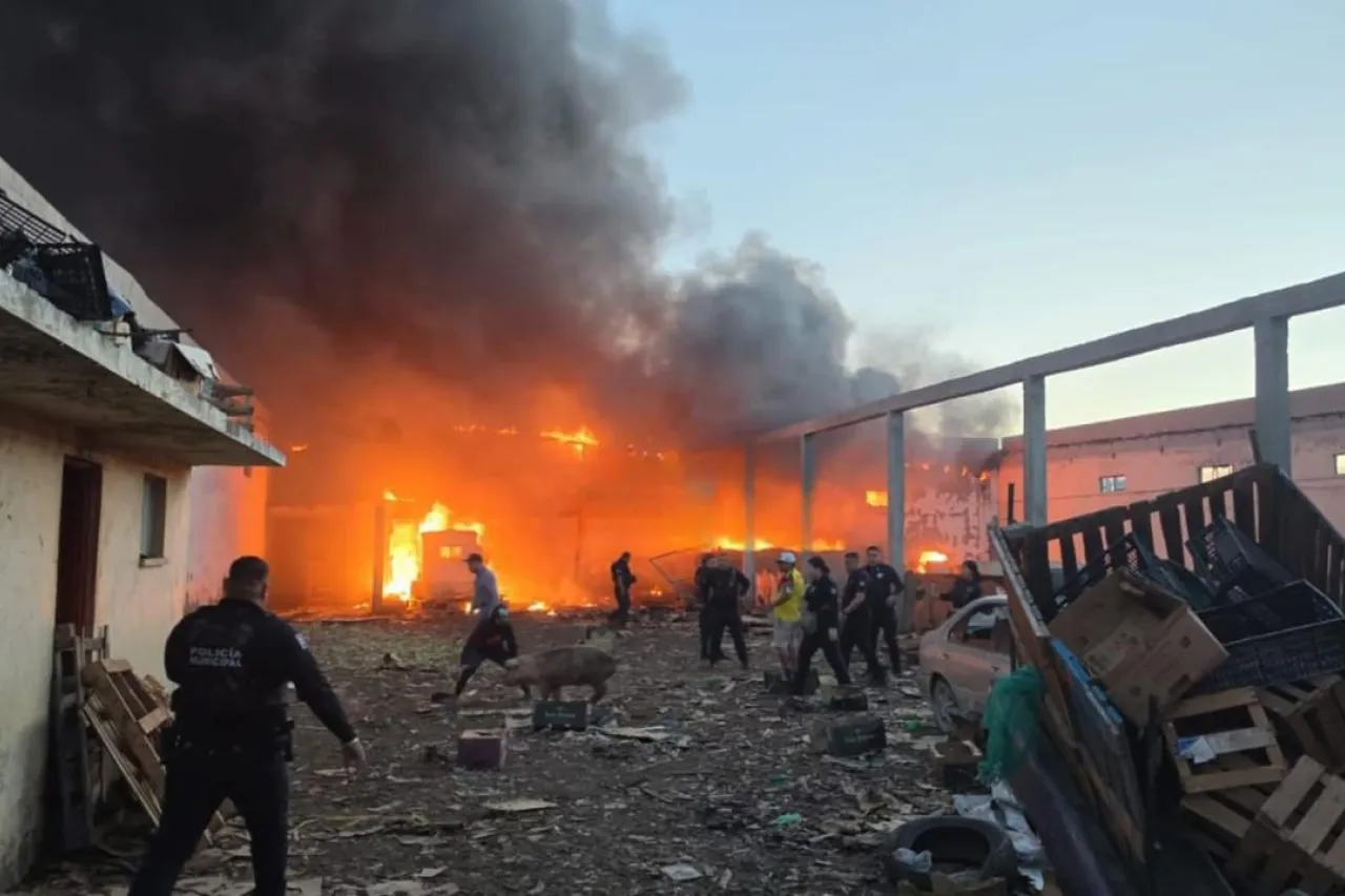 El director de Protección Civil Municipal, Sergio Rodríguez, dio a conocer que luego de más de 10 horas de arduo trabajo por parte de 40 bomberos encabezados por el comandante Jorge Ignacio Puentes, en una bodega con animales en las calles Murcia y Turquía de la colonia Santa Rosa, donde murieron varios animales lograron sofocarlo.