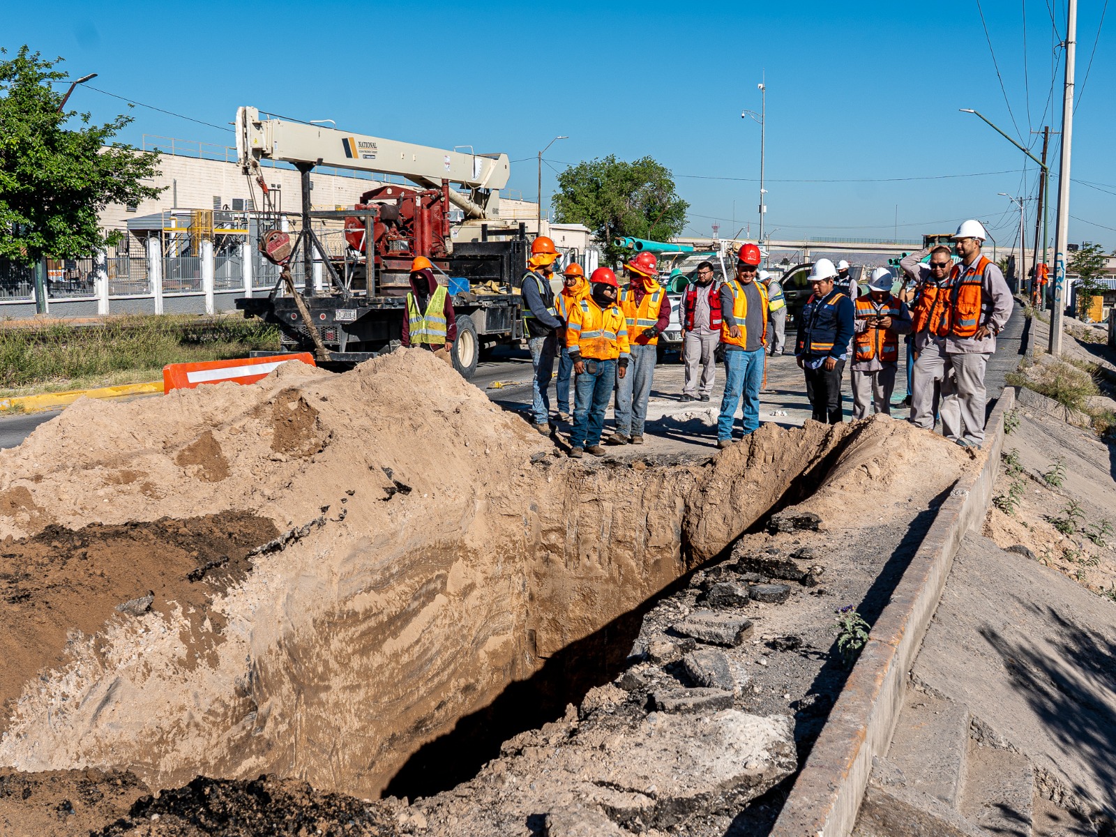 La Junta de Agua y Saneamiento de Juárez, a través del departamento de alcantarillado, concluyó la reparación de un hundimiento no expuesto registrado en el Eje Vial Juan Gabriel, antes de llegar a la avenida López Mateos.