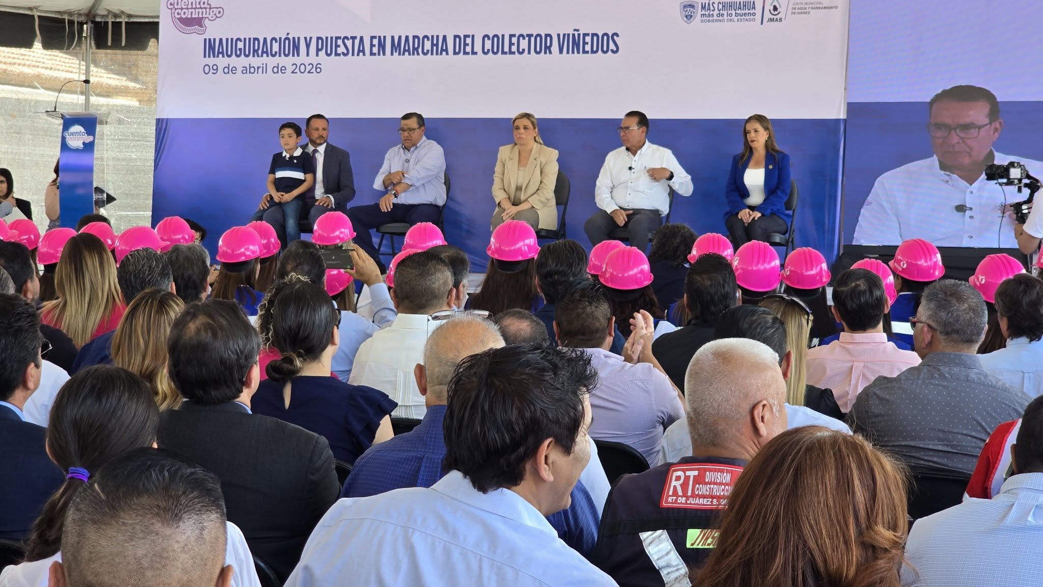 La gobernadora María Eugenia Campos Galván encabezó la puesta en operación del colector sanitario Viñedos en Ciudad Juárez, obra que sustituye infraestructura con más de cinco décadas de antigüedad y busca mejorar el sistema de drenaje en la zona.