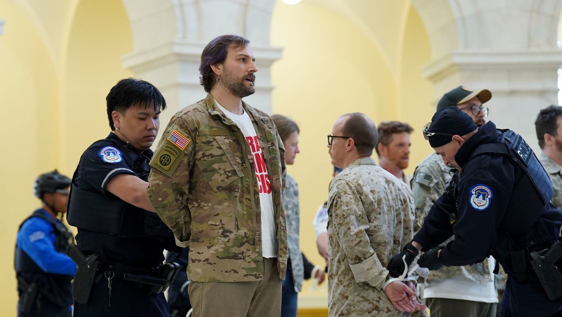 Decenas de veteranos de guerra y familiares de militares fueron arrestados en el Capitolio de Estados Unidos tras manifestarse contra el conflicto con Irán y exigir el fin de las operaciones militares.