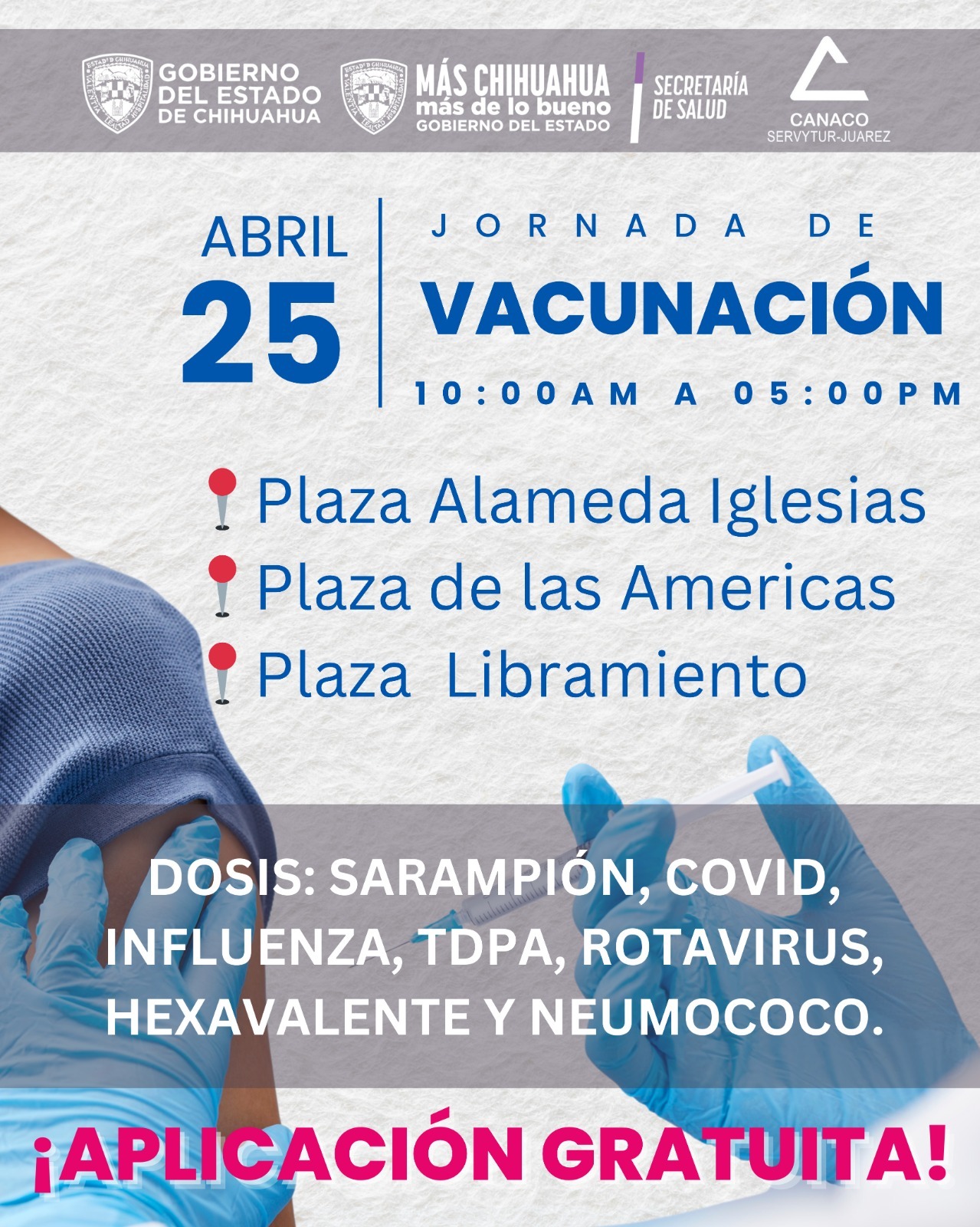 El empresario informó que estas actividades se retomarán este 25 de abril en horario de 10 de la mañana a 5 de la tarde en 3 plazas comerciales Alameda Iglesias, Mi Plaza Libramiento y Plaza las Américas, donde se estarán proporcionando dosis contra el Sarampión, Covid, Influenza, Rotavirus, Hexavalante, Neumococo entre otras.