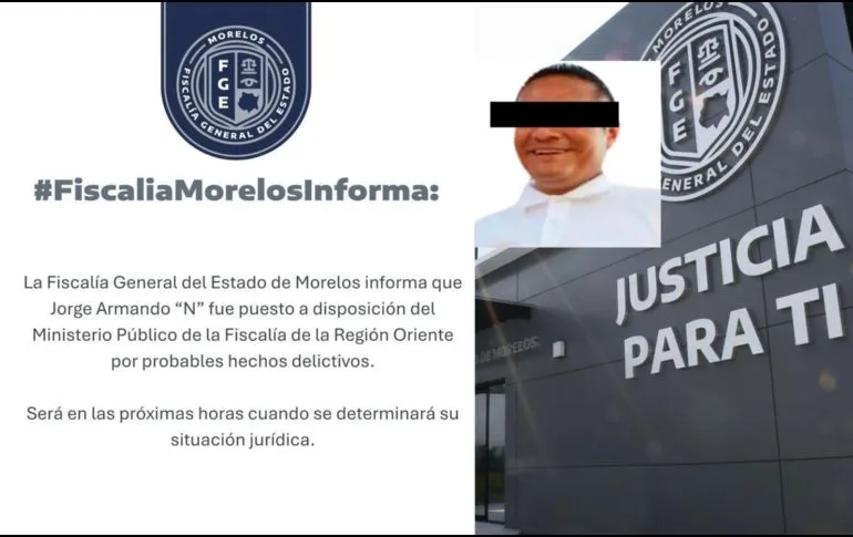 La Fiscalía General del Estado de Morelos confirmó que el edil fue puesto a disposición del Ministerio Público de la Fiscalía de la Región Oriente por los probables hechos delictivos.
