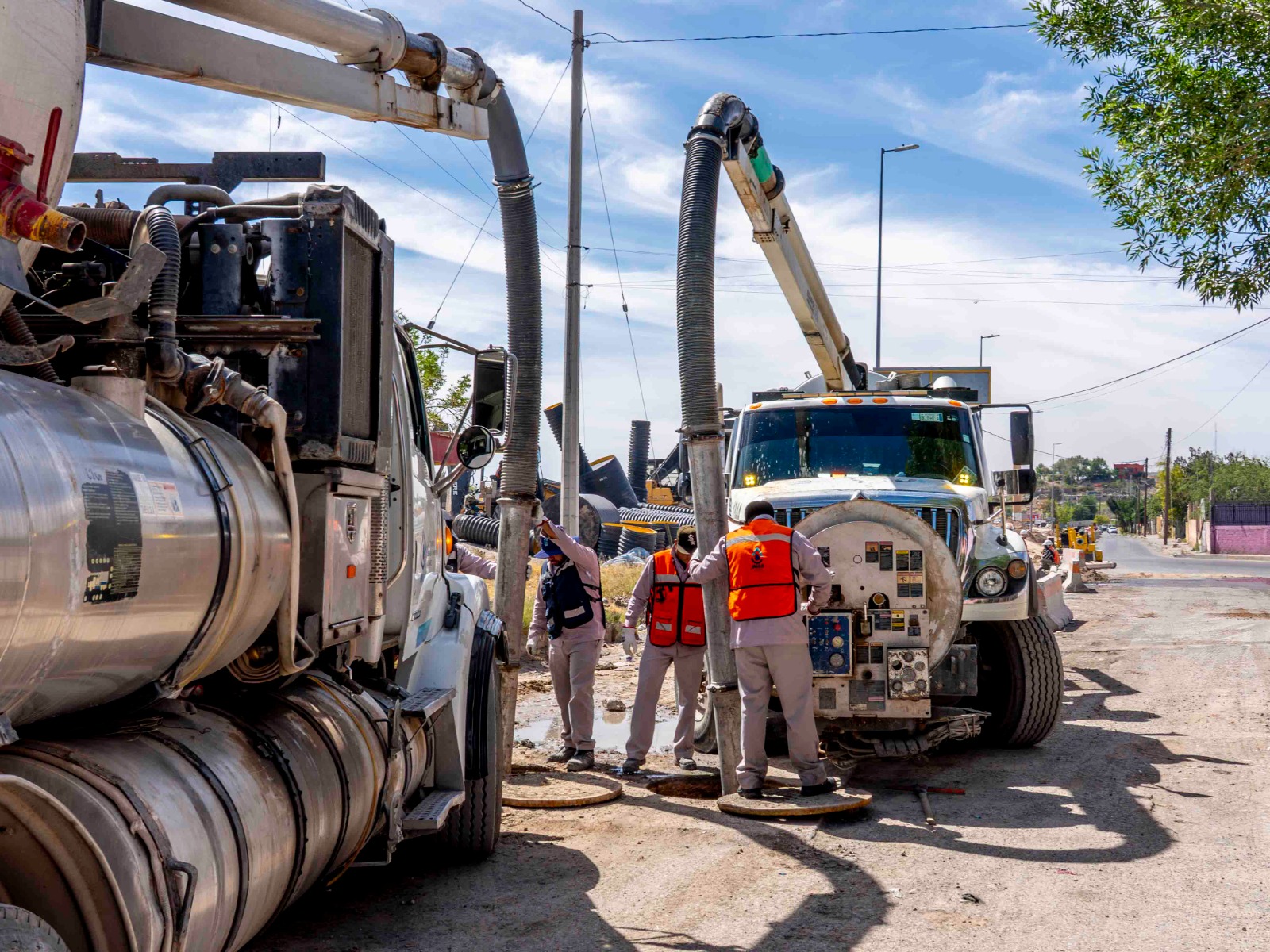 La Junta Municipal de Agua y Saneamiento de Juárez continúa con trabajos de mantenimiento preventivo en el colector Nadadores, ubicado en las colonias Sara Lugo y Ladrillera, con el objetivo de evitar fallas en el sistema de drenaje.